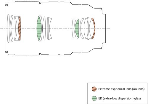 Two XA (extreme aspherical) elements and two ED (Extra-low Dispersion) glass elements suppress chromatic and other aberration for superior resolution right out to the image edges. Floating focus minimises aberration variations for superb resolution at close focus. Nano AR Coating II controls flare and ghosting for excellent contrast and clarity.
