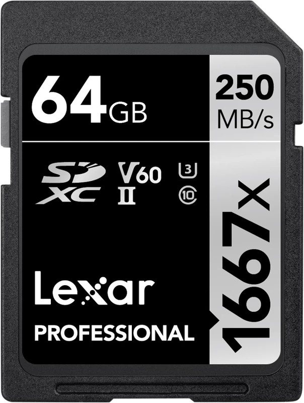 - LEXAR 64GB Professional 1667X UHS-II SDXC Memory Card