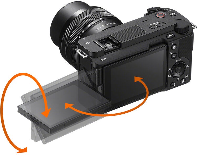 The side-opening vari-angle LCD screen and the positioning of major controls have been designed for convenient shooting of selfies and vlogs. The LCD screen makes it easy to check framing while shooting from just about any angle, while the REC button, Still/Movie/S&Q selector, custom buttons and other controls on the camera's top panel are laid out for easy access and operation.