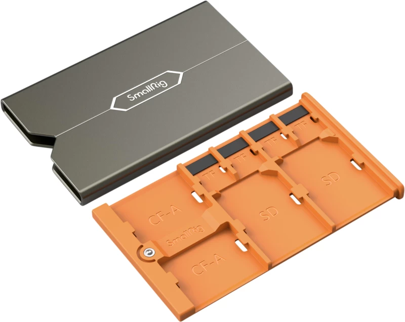 SmallRig atmiņas karšu futrālis ir palīglīdzeklis fotogrāfijas entuziastiem. Tajā var glabāt divas CFexpress tipa A kartes, divas SD kartes un četras microSD kartes, nodrošinot ērtu veidu, kā saglabāt atmiņas kartes drošībā. Katrai kartei ir atsevišķa vieta, un kartes var ātri un viegli ievietot futrālī. Uz slotiņām ir uzdrukāti saderīgo karšu nosaukumi, lai tās varētu ātri atpazīt. Ārpusē futrālis ir izgatavots no izturīga alumīnija sakausējuma, bet iekšpusē — no ABS+PC materiāla.