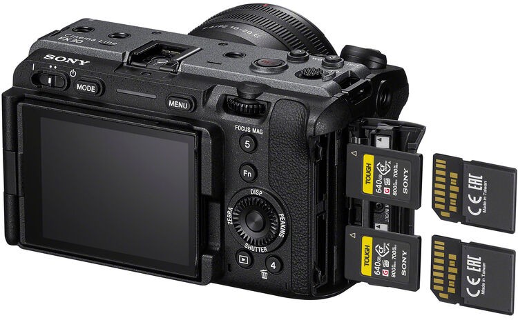 FX30 modeļa kamerai ir uz sānu atverams aizmugurējais monitors ar regulējamu leņķi, kas nodrošina plašas pozicionēšanas un kadra izvēles iespējas ierakstē ar stabilizatoru, ierakstē ar rokās turētu kameru, ļoti zemā ierakstē vai citos ierakstes apstākļos. Lielais 3,0 tipa LCD monitors ar 2,36 miljonu punktu skārienjutīgo paneli nodrošina skaidru redzamību spilgtā apgaismojumā ārpus telpām. Funkciju (Fn) izvēlni var parādīt, monitorā ar pirkstu pavelkot uz augšu, lai ātri piekļūtu piešķirtajām bieži izmantotajām funkcijām.
