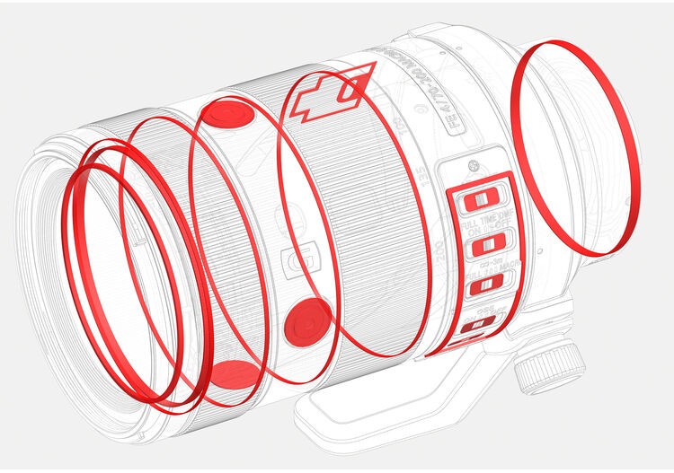 Precīzas darbības uzlabotie asfēriskie elementi un asfēriskie objektīva elementi, trīs zemas dispersijas stikla elementi un sevišķi zemas dispersijas stikls ir apvienoti modernā objektīva optiskajā konstrukcijā, lai nodrošinātu izcilu izšķirtspēju un kontrastu visā attēla laukumā 70 —200 mm tālummaiņas diapazonā. Attēla kvalitāte ir nemainīgi lieliska visos fokusa attālumos.