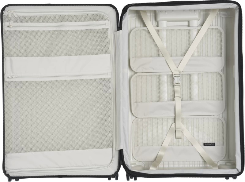 Method bagāžas reģistrācijas čemodāns no Gomatic ir rullīšu čemodāns, kas ir pilnībā optimizēts. Tas ir izgatavots no izturīgiem un vieglajiem materiāliem, kas samontēti ar mikro-metināšanas tehnoloģiju, lai atbilstu ceļošanas prasībām. Polikarbonāta apvalks ir ar rievotu dizainu, kas ir izgatavots, lai saglabātu savu formu, un salokāms kompresijas panelis ļauj paplašināt čemodānu, lai tajā varētu ievietot pietiekami lielu bagāžu 8 līdz 14 dienām.