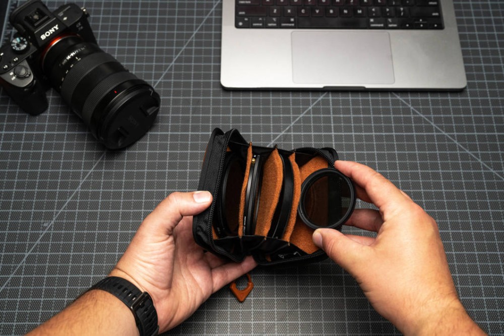 Ideāli piemērots ceļojumiem un fotografēšanai brīvā dabā, šis futrālis apvieno izturīgu aizsardzību un glītu dizainu, nodrošinot, ka jūsu filtri ir drošībā un gatavi jebkuram kadram.