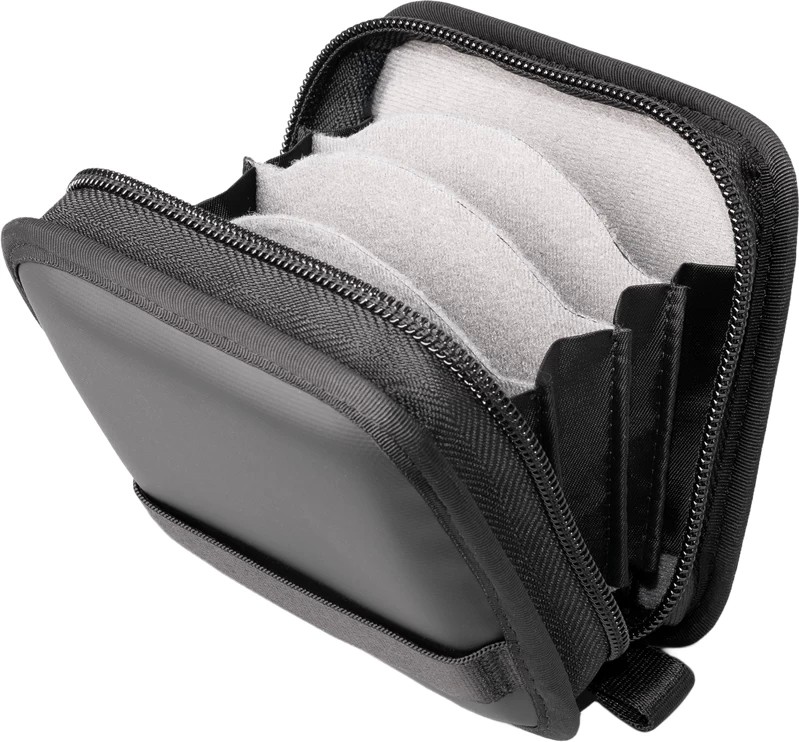 Futrālim ir pastiprināta EVA putu ārpuse, kas nodrošina aizsardzību pret triecieniem, un mīksts polsterēts iekšpuse, lai novērstu skrāpējumus. Četras polsterētas atveres nodrošina filtru drošību, savukārt ārējā siksnas stiprinājuma cilpa ļauj piespraust futrālīti pie somas vai aprīkojuma, lai atvieglotu piekļuvi.