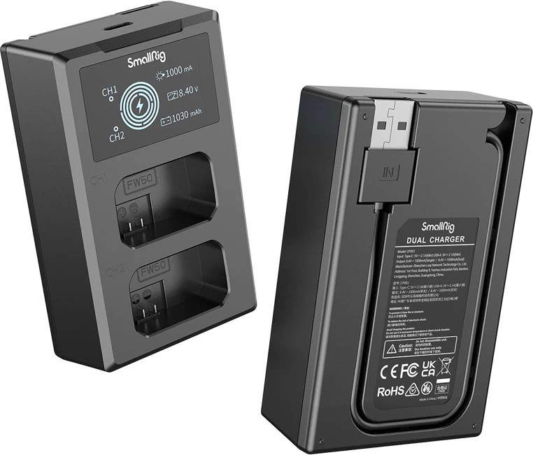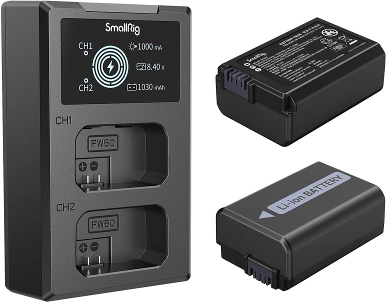 - SMALLRIG 3818 NP-FW50 Akumulatoru lādētājs ar akumulatoriem