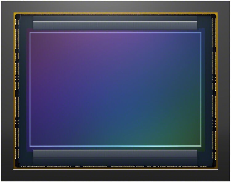 An enhanced partially stacked Exmor RS CMOS image sensor features 33.0 megapixels and high-speed circuitry above and below the sensing layer. Readout is approximately 4.5x faster providing a maximum shutter speed of 1/16000 sec., blackout-free bursts at up to 30 fps with full AF/AE tracking, and video recording at 4K 120p. It delivers up to an unprecedented 16 stops of dynamic range with smooth gradations.
