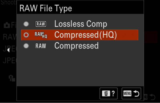 A lightweight RAW format achieves high image quality in smaller files that are easier to manage. The [Compressed (HQ)] format provides even greater compression in lightweight RAW files while prioritising image quality, and the [Compressed] format allows for extended shooting.