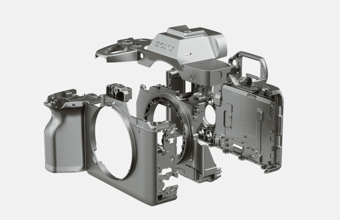 A lightweight, high-rigidity magnesium alloy is used for the top cover, front cover, internal frame, and rear cover. The grip and front cover are manufactured as a single unit for high rigidity, while the mount is attached by six screws for extra strength. This provides maximum durability on shoots requiring a variety of large, heavy lenses, like super-telephoto lenses.