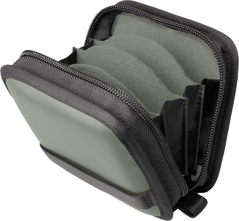 Чехол имеет усиленную внешнюю часть из пеноматериала EVA, которая обеспечивает защиту от ударов, и мягкую мягкую внутреннюю часть, предотвращающую появление царапин. Четыре мягкие отверстия обеспечивают безопасность фильтров, а внешняя петля для крепления ремня позволяет прикрепить чехол к сумке или оборудованию для облегчения доступа.